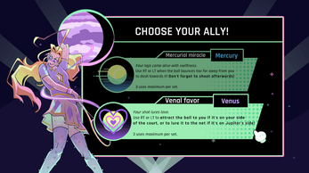 Very juicy and satisfying game ! You can really feel the ambiance of a tennis anime in a space setting. The sets with Jupiter are great, the powers are very fun to use and the shots you can do are amazing. The dialogues are also very energetic and snappy and the voice acting is perfect. Congrats on the team !